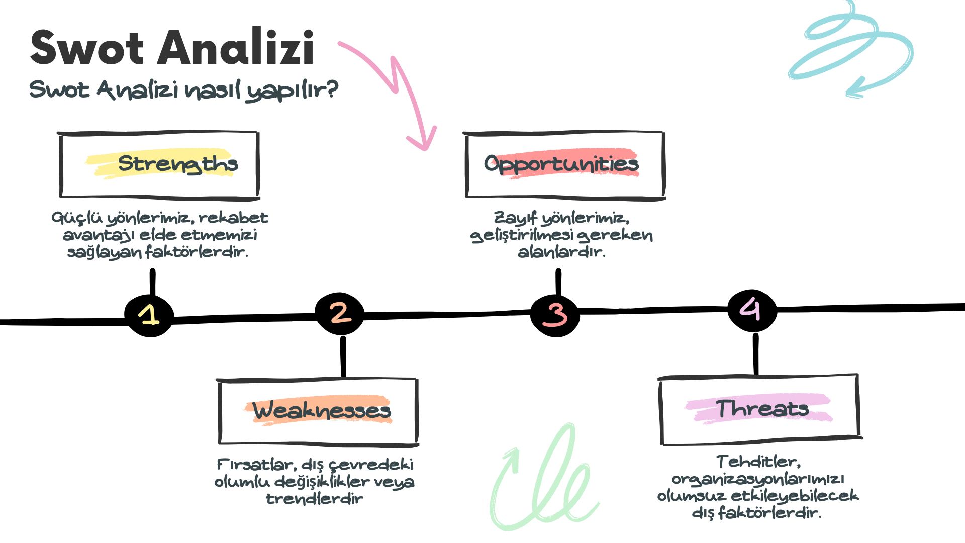SWOT analizi, organizasyonlarımızın güçlü ve zayıf yönlerini, dış çevredeki fırsatları ve potansiyel tehditleri belirlememize yardımcı olan bir araçtır. Bu analiz, stratejik planlama sürecinde bize önemli içgörüler sağlar.