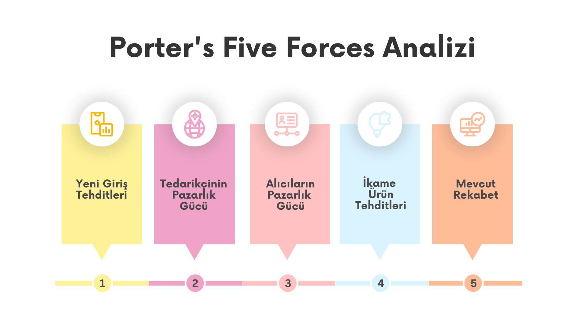 Porter’s Five Forces analizi, bir pazarın rekabetçi yapısını anlamak ve stratejik kararlar almak için kullanılan bir yöntemdir. Michael E. Porter tarafından geliştirilen bu model, bir endüstrinin rekabet düzeyini ve çekiciliğini değerlendirmek için beş temel kuvveti analiz eder.